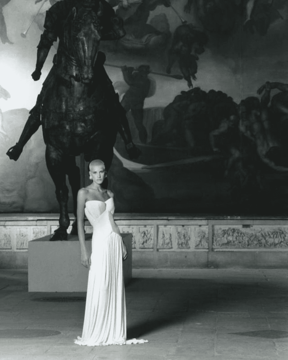 À la direction artistique de la mythique Maison Grès, il réveille l’héritage du plissé : modernité, rigueur, et sensualité architecturale.
